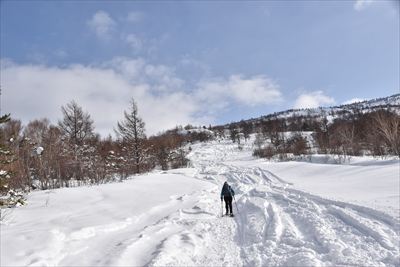 | もうすぐ9時、あっという間だね BCスキーの方が何人か、ワカン+アイゼンも2人以上いるみたい |