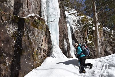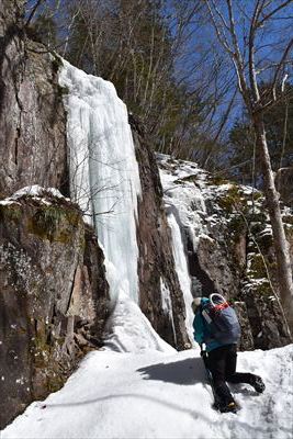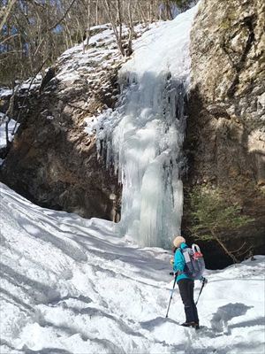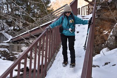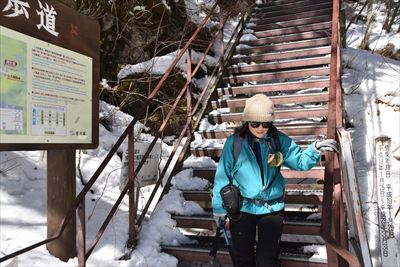 | 階段の雪が凍結していてチェインアイゼンが効かない... 6本アイゼンの方がよかったようです |