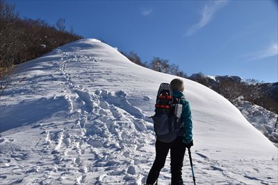 | 獅子ヶ鼻山に行ってきました、今年は奥さんと一緒 トレースしっかりで先シーズンの初回に比べて楽に登れました |