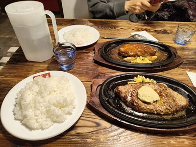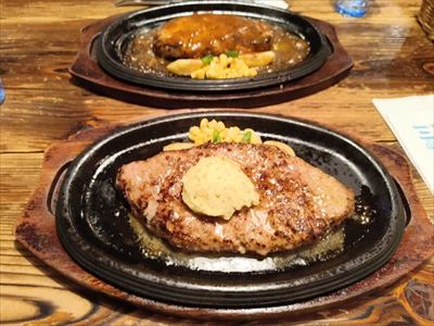 | 奥さんは200gでデミグラス、僕は300gのプレーン、ガーリックバターのトッピング | |
